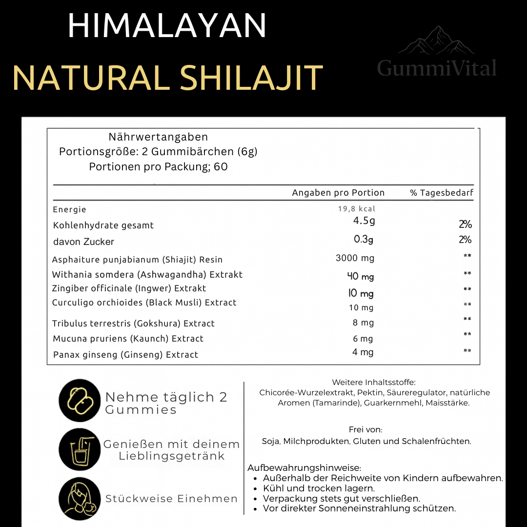 Gummivital™ kombiniert Shilajit & Ashwagandha, zwei der stärksten natürlichen Adaptogene, die seit Jahrhunderten in der traditionellen Heilkunst verwendet werden. Die Wirkung ist nicht nur spürbar, sondern auch wissenschaftlich untersucht – mehr Energie, weniger Stress und besserer Schlaf.
